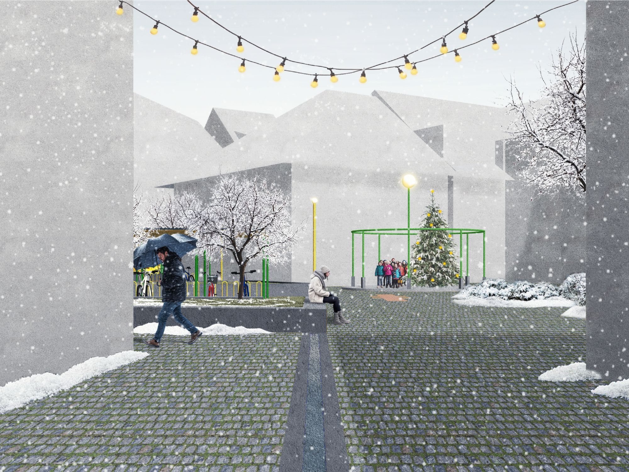 Il progetto nasce nell’ambito di un concorso indetto dalla Città di Winterthur per la riqualificazione dell’area di Obertor, oggi occupata da un’ampia superficie asfaltata adibita a parcheggio. L’obiettivo del Comune è smantellare l’attuale configurazione e trasformarla in uno spazio pubblico e semi-pubblico di qualità, sostenibile e inclusivo. La proposta si sviluppa lungo un asse centrale lineare, rappresentato da una canaletta di raccolta delle acque meteoriche che connette il cortile di Obertor al contesto urbano circostante, in particolare alle direttrici di Obertor e Badgasse. Lo spazio è articolato in due aree principali: a est superfici aperte per passaggi pedonali e veicolari con accessi flessibili agli edifici; a ovest aree multifunzionali di qualità, integrate con giardini privati e arricchite da frutteti, giardini della pioggia ed elementi d’acqua. Strutture leggere come padiglione, posti bici coperti e spazi di servizio creano un continuum tra pubblico e privato, favorendo la mobilità lenta e sostenibile. Gli interventi paesaggistici valorizzano il microclima e la biodiversità urbana, i sistemi di gestione sostenibile delle acque piovane migliorano resilienza ambientale e qualità dello spazio. L’insieme costituisce un cortile urbano inclusivo e multifunzionale, capace di migliorare il benessere della comunità e la qualità dello spazio aperto nel cuore della città.